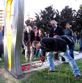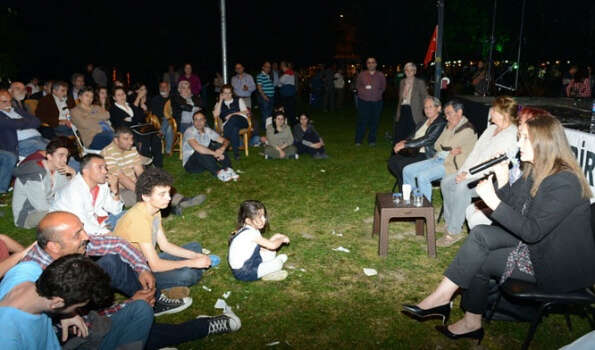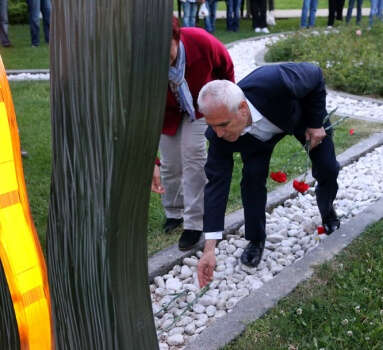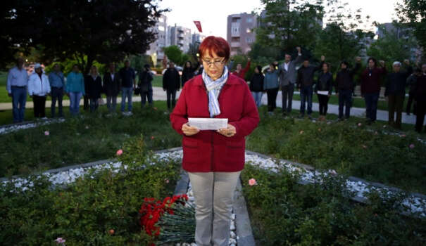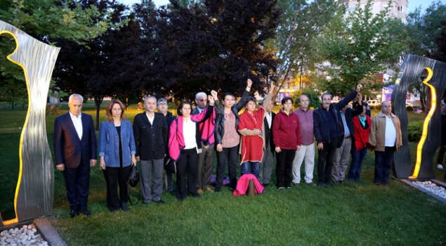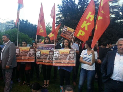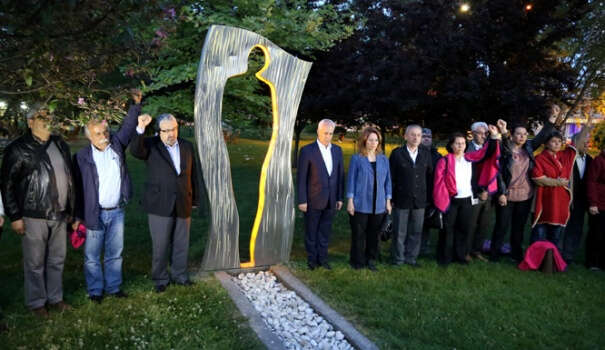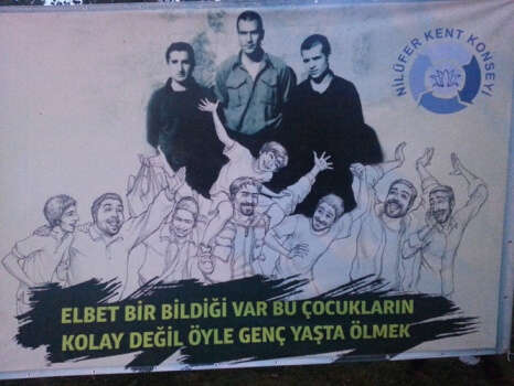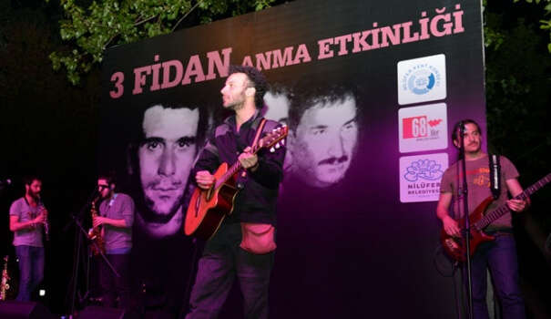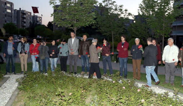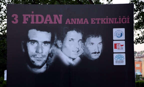 Üç Fidan Parkı`ndaki anmada, Deniz Gezmiş ve arkadaşlarını Gezi Direnişi`nde öldürülen gençlerle birlikte gösteren pankart dikkat çekti