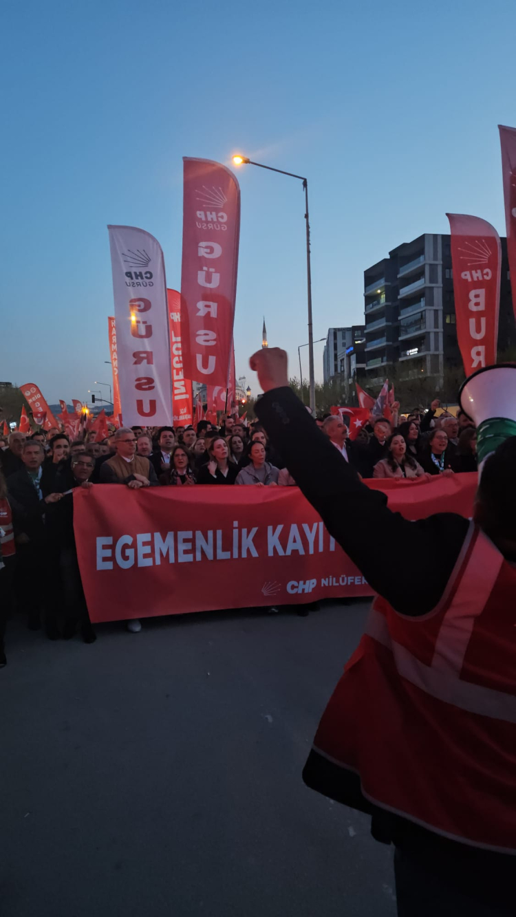 Bursa'da Mustafa Bozbey'e destek gösterileri iki gün aradan sonra yeniden başladı. Bozbey'in gözaltına alındığı 31 Mart'ta belediye önünde başlayan eylemler bundan böyle her hafta bir ilçeye yayılarak devam edecek. CHP Bursa İl Başkanlığı ilk gösteriyi Bozbey'in 20 yıl yönettiği Nilüfer'de yaptı. Bozbey'in 20 yıl boyunca yürüyüşler düzenlediği Nilüfer'in ünlü FSM Bulvarında bu kez Bozbey'e destek yürüyüşü vardı. İşte yürüyüşten kareler...