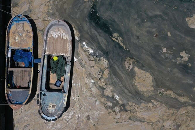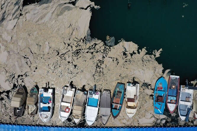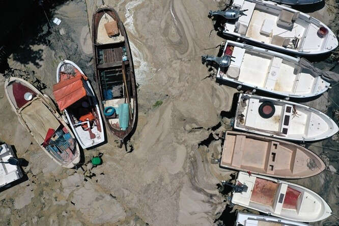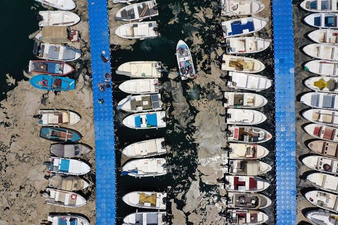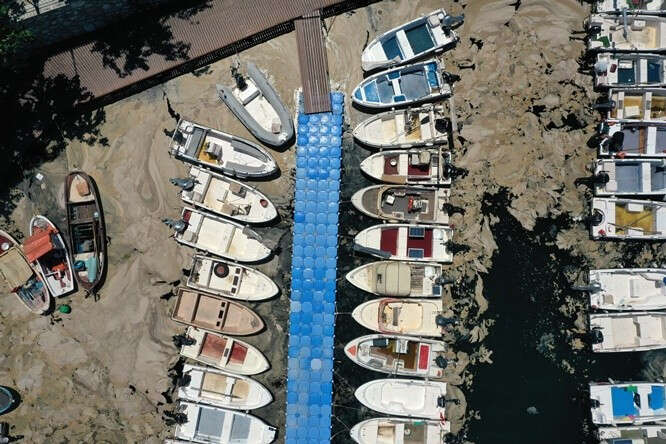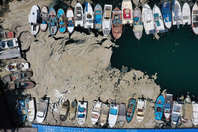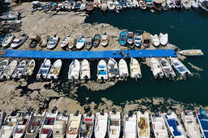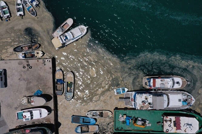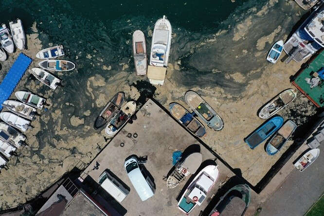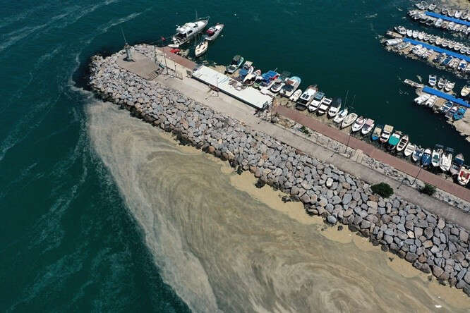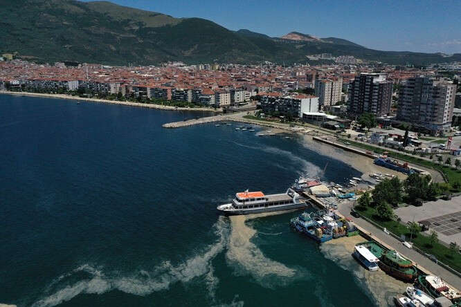 Marmara Denizi kıyılarını kaplayan müsilaj (deniz salyası) Bursa'nın Gemlik ilçesinde görülmeye devam ediyor. Gemlik Körfezi açıklarındaki müsilaj tabakaları, rüzgarın etkisiyle kıyı kesimlerinde de yer yer birikiyor.