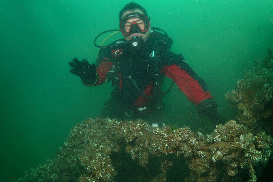 Türkiye Sualtı Sporları Federasyonu Çevre Kurulu Başkanı Tahsin Ceylan, 17 Ağustos Marmara Depremi'nin etkilerinin unutulmaması için Gölcük Değirmendere'de sular altında kalan batık şehrin son halini görüntüledi.