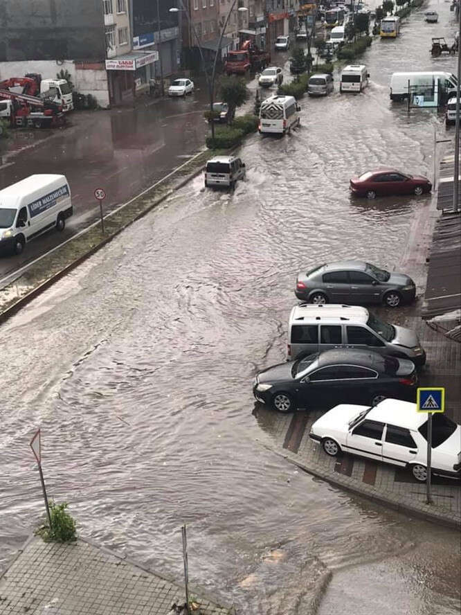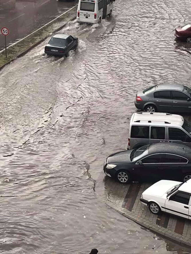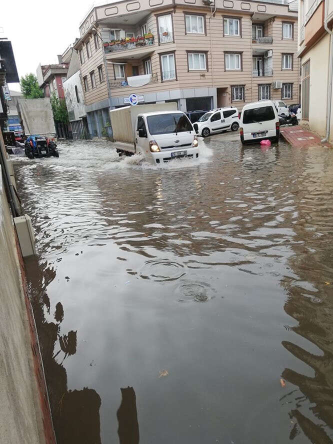 Bursa'nın İnegöl ilçesinde sabah saatlerinde etkili olan sağanak, hayatı olumsuz etkiledi. Şiddetli yağış nedeniyle cadde ve sokaklarda su birikintileri oluştu. Su birikintilerinden dolayı sürücüler zor anlar yaşadı.