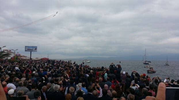Türk Yıldızları`nın Mudanya semalarında ilk kez gerçekleştirdiği nefes kesen gösterileri heyecanla izlendi