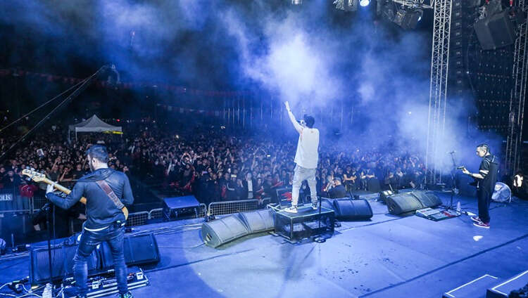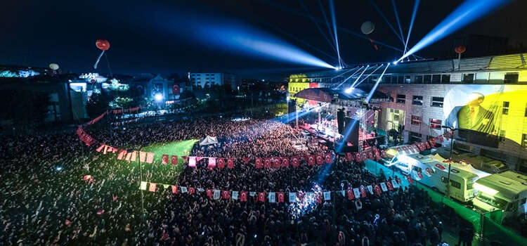 Nilüfer Cumhuriyet Meydanı'nda toplanan binlerce vatandaş Manga Grubunun konserini izledi.