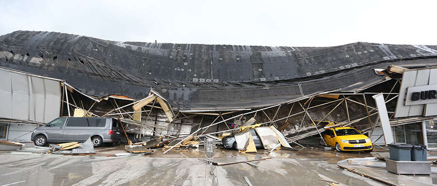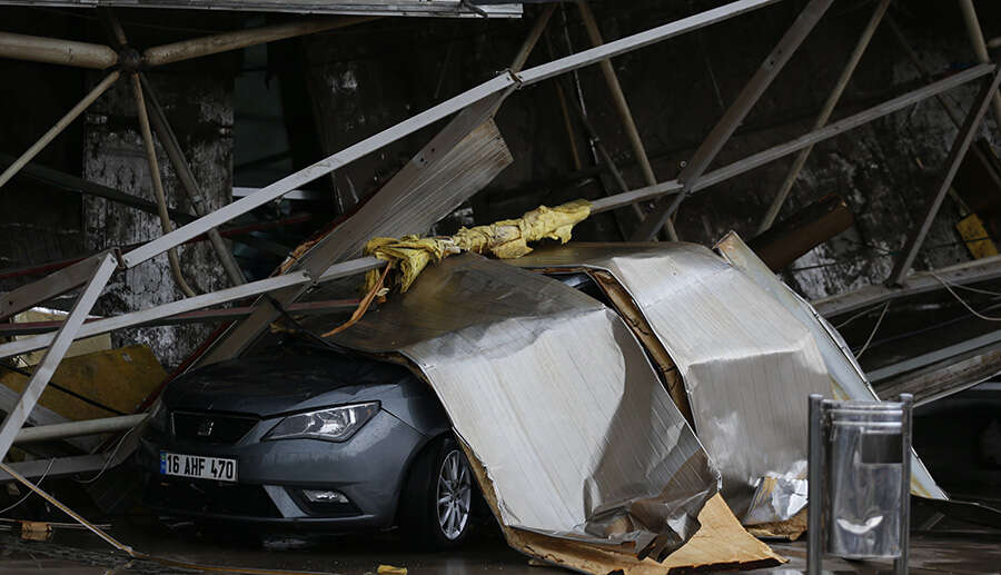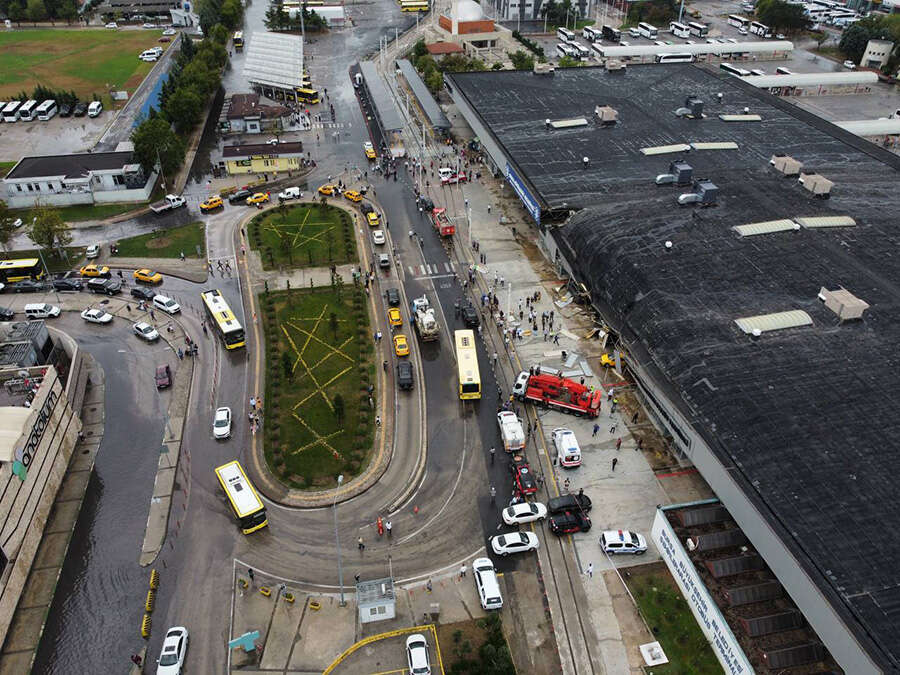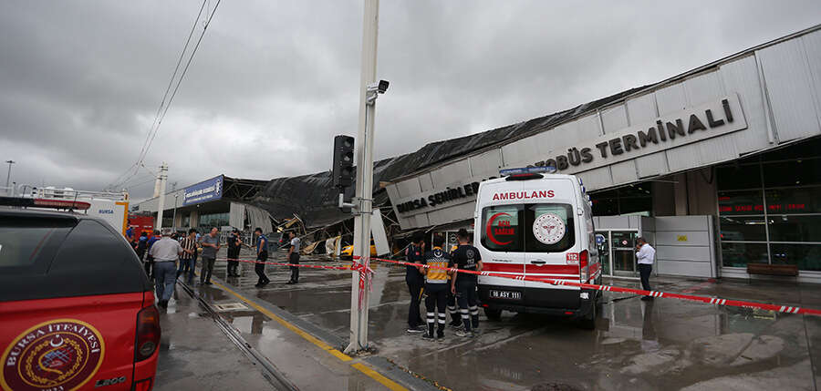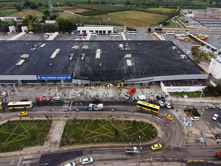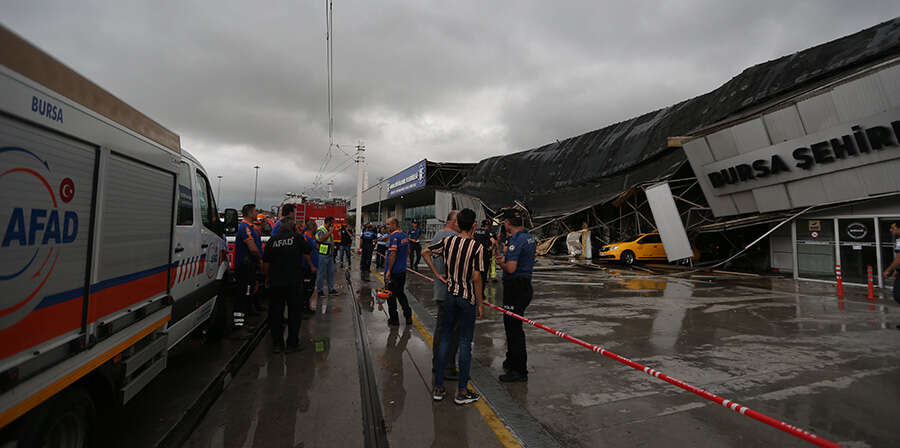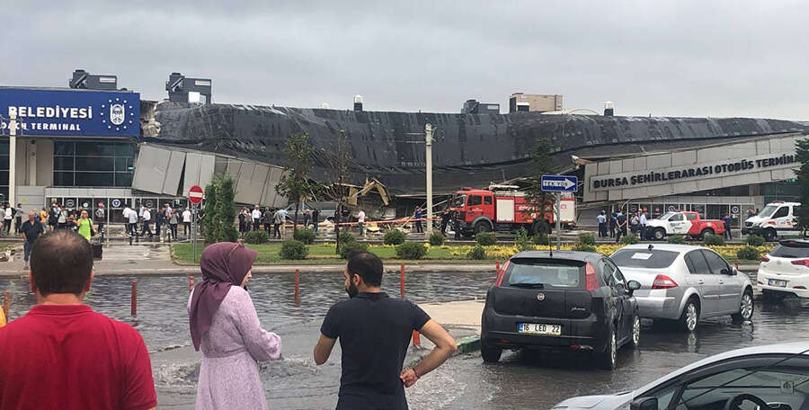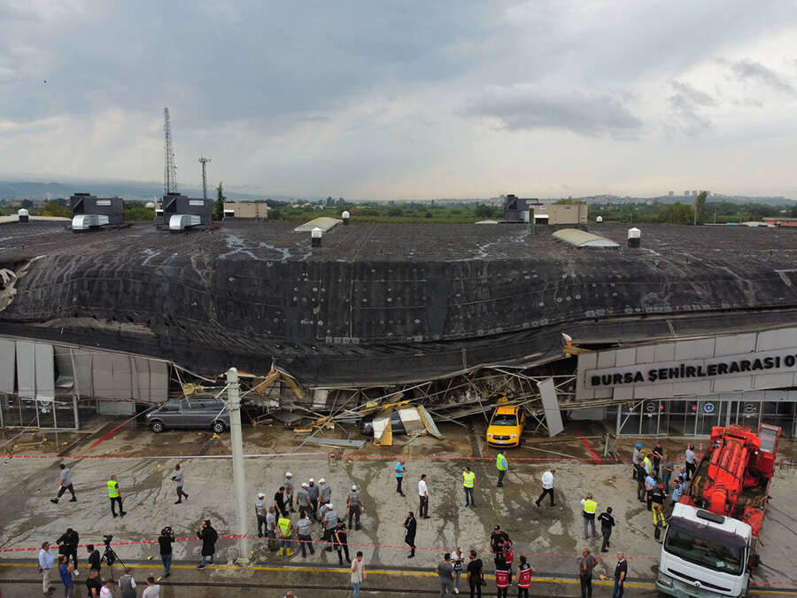 Yıldırım düşen Bursa Şehirlerarası Otobüs Terminali'nin çatısının bir bölümü çöktü.