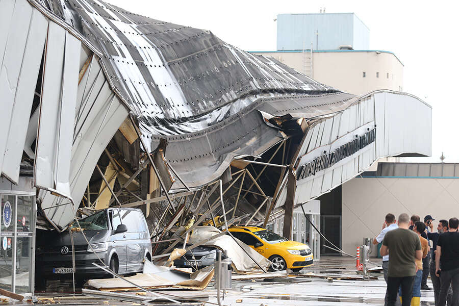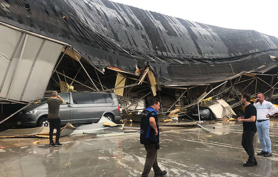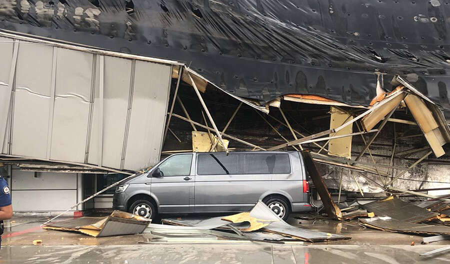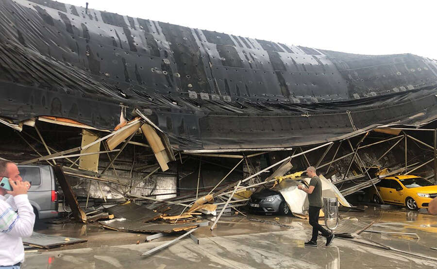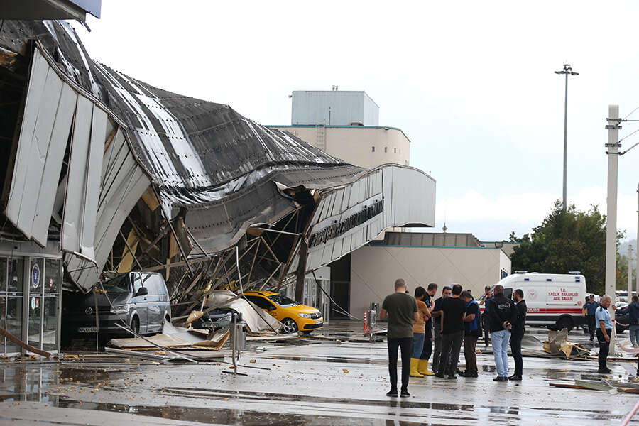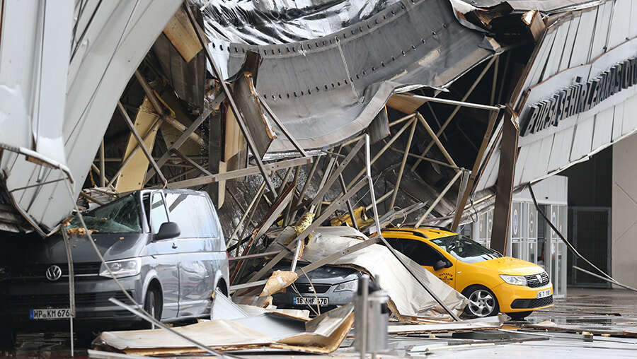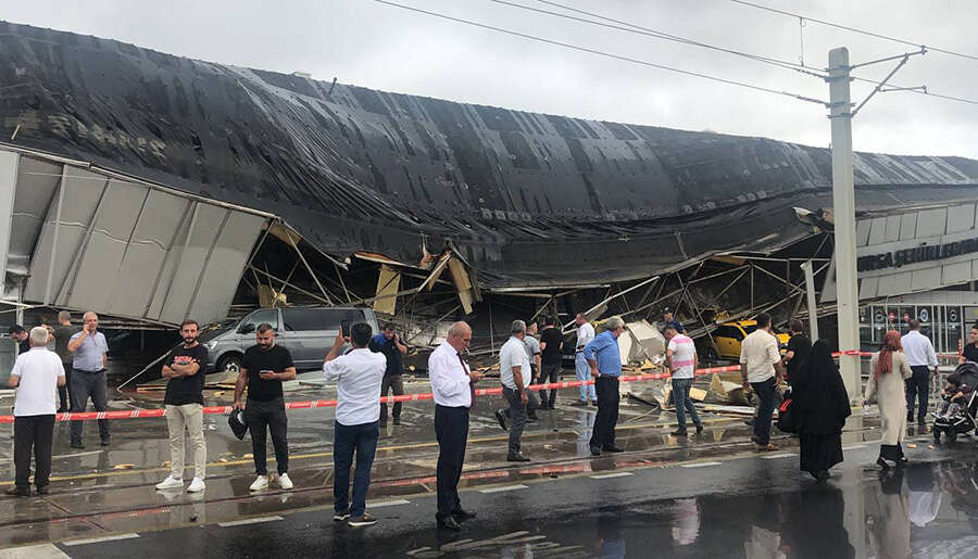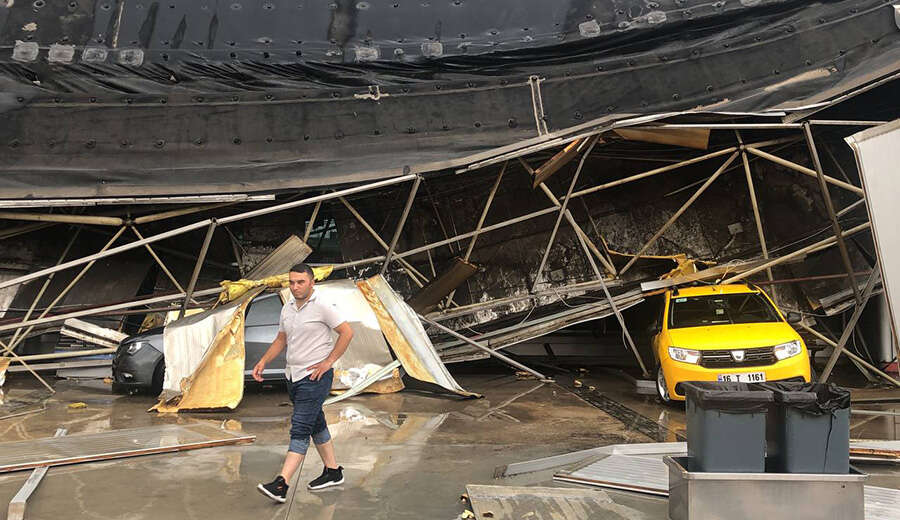 Yıldırım düşen Bursa Şehirlerarası Otobüs Terminali'nin çatısının bir bölümü çöktü.