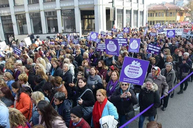 Bursa'da binlerce kadın şiddete karşı yürüdü