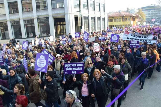 Bursa'da binlerce kadın 25 Kasım Kadına Yönelik Şiddete Karşı Uluslararası Mücadele Günü'nde 'şiddete hayır' demek için sokağa çıktı. Bursa'daki Orhan Parkı'nda toplanan çok sayıda AKP'li kadın, "Sevgi şifadır", "Kadın güçlenirse toplum güçlenir" dövizleriyle 15 Temmuz Demokrasi Meydanı'na kadar yürüdü. CHP Bursa İl Kadın Kolları'nın gerçekleştirdiği etkinlikte ise binlerce kadın, Setbaşı'ndan Heykel'e yürüdü, Atatürk Anıtı'nın önünde basın açıklaması yaptı.
