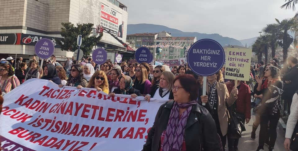 Bursa'da kadınlar 8 Mart Dünya Emekçi Kadınlar Günü'nü kutlamak için sokaktaydılar. 8 Mart Dünya Kadınlar Günü dolayısıyla çeşitli etkinlikler düzenleyen yüzlerce kadın, eşit ve özgür bir dünya için bir araya geldi.