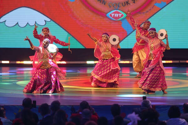 Bursa'da düzenlenen TRT Uluslararası 23 Nisan Çocuk Şenliği kapsamında "23 Nisan Gala Programı" gerçekleştirildi. TOFAŞ Spor Salonu'ndaki programda, Rusya, Karadağ, Gana, Azerbaycan, Ukrayna, Bosna Hersek, Tunus, Gürcistan, Arnavutluk, Tunus, Bulgaristan ve Mali'nin de aralarında bulunduğu 40 ülkeden gelen öğrenciler, yöresel kıyafetlerle halk oyunları gösterileri sundu.