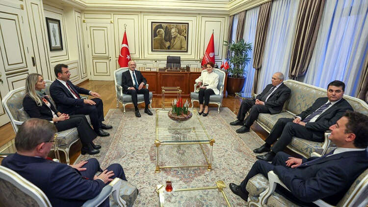 Altılı Masa'nın liderleri miting öncesi İstanbul Büyükşehir Belediye Başkanı Ekrem İmamoğlu'nun makam odasında biraraya geldi.