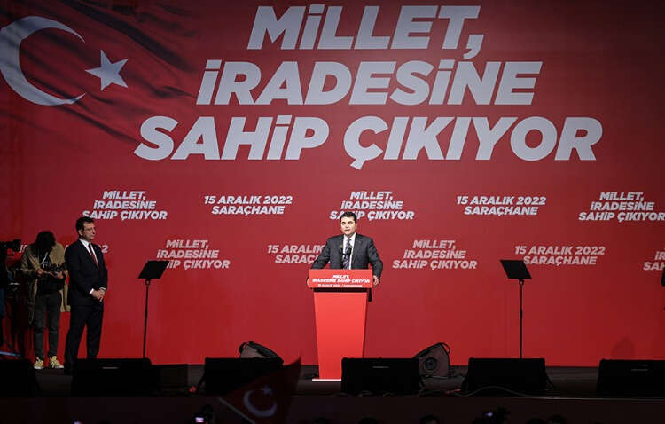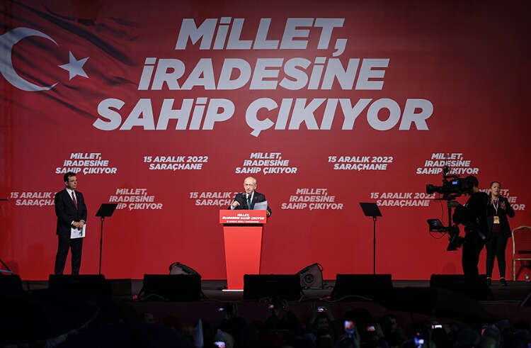 İstanbul Büyükşehir Belediye Başkanı Ekrem İmamoğlu'nun çağrısıyla Saraçhane'de onbinlerce vatandaşın katıldığı mitingde buluşan Altılı Masa'nın liderleri gövde gösterisi yaptı. Onbinlerce vatandaş iktidarın yargı kararları ile siyasete yönelik müdahalesine karşı halkın iradesini savundu.