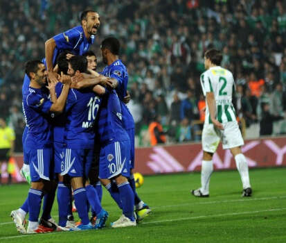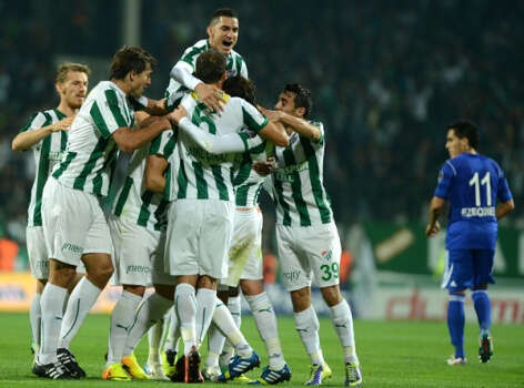 Bursasporlu futbolcular Sebastian Pinto`nun attığı golün ardından büyük sevinç yaşadı