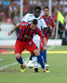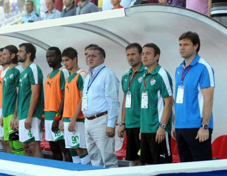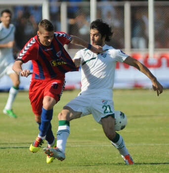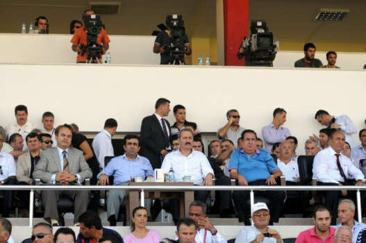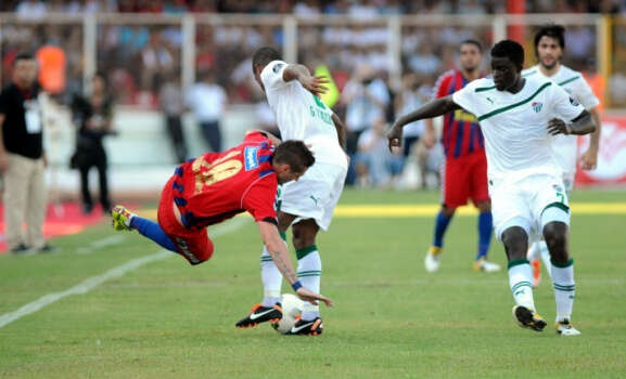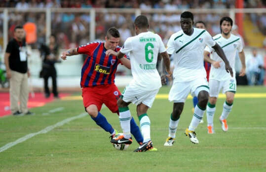 SPOR TOTO SUPER LIG`DE MERSIN IDMANYURDU ILE BURSASPOR KARSILASTI. MAC ONCESI GECEN SEZON BANK ASYA 1. LIG`DE SAMPIYON OLAN MERSIN IDMANYURDU`NUN KUPASINI EKONOMI BAKANI ZAFER CAGLAYAN VERDI.
