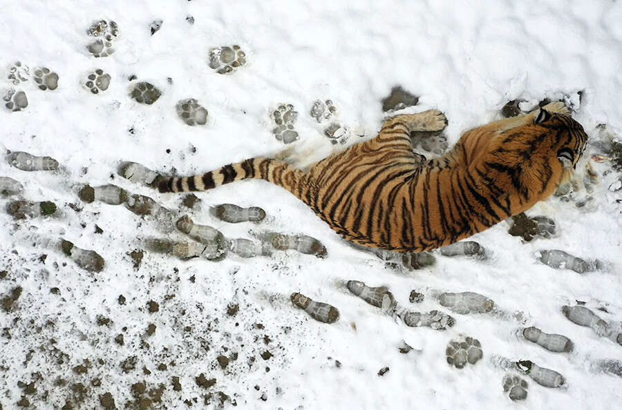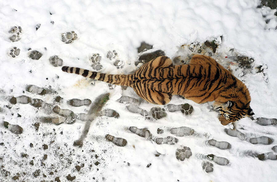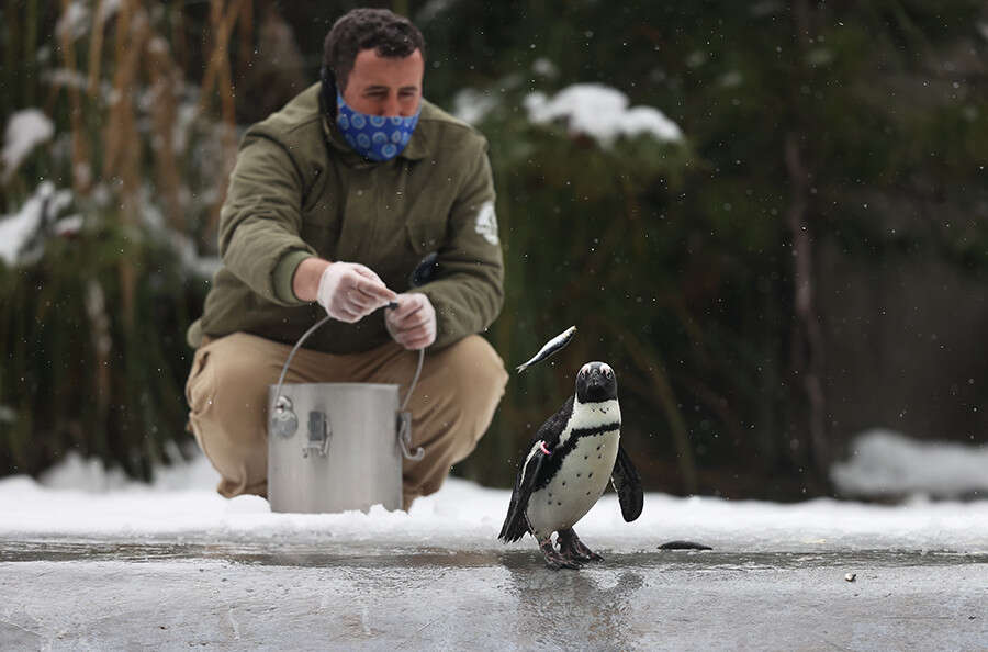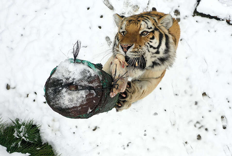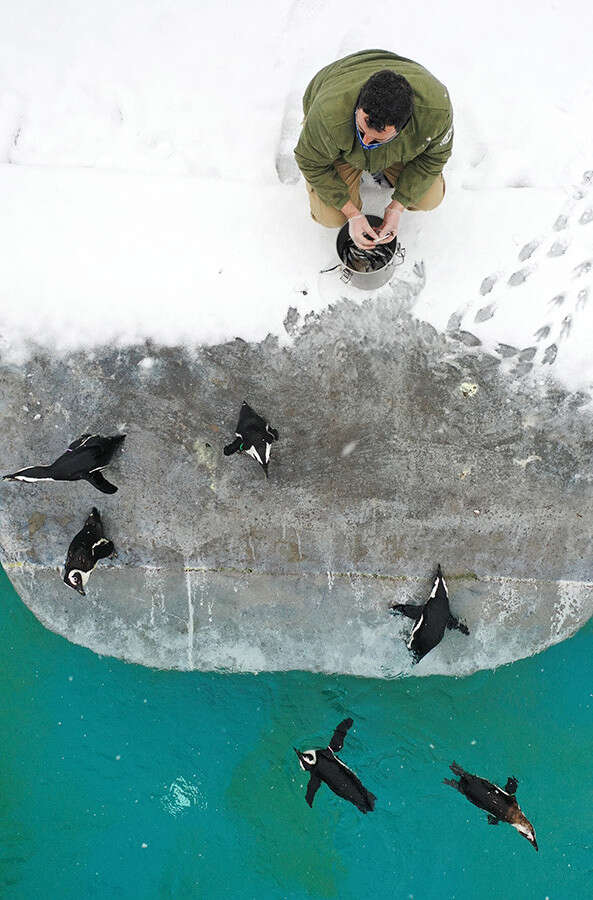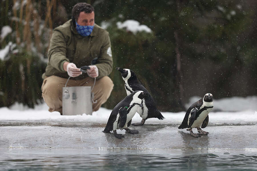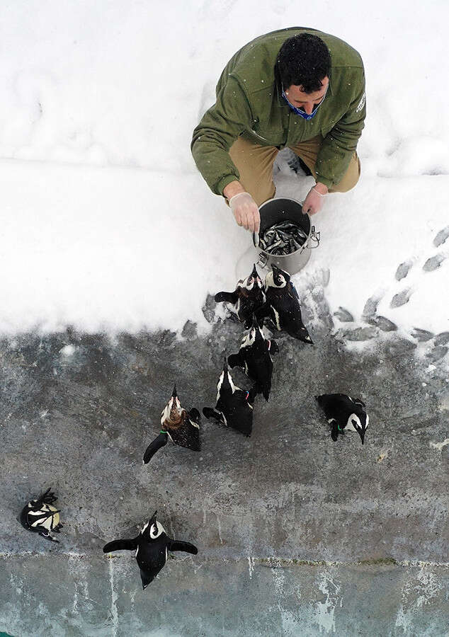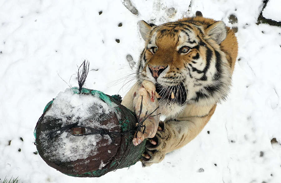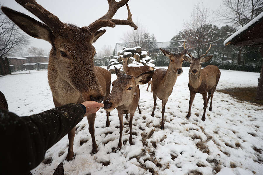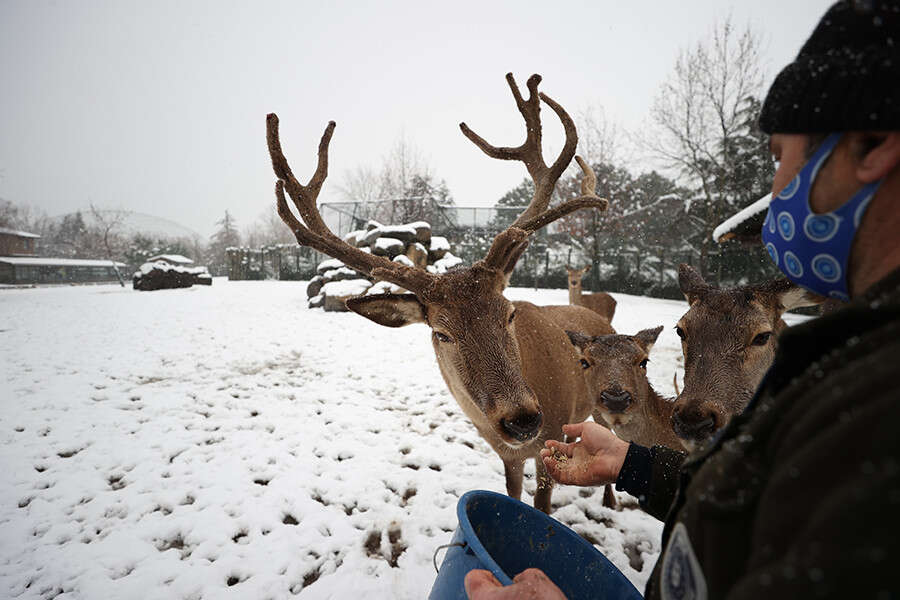 Bursa Hayvanat Bahçesi'nin soğuk hava şartlarına alışkın olan sakinlerinin, yoğun kar yağışında beyaz örtüyle kaplanan yaşam alanlarındaki beslenme saati, belgesellerdeki görüntüleri aratmadı.