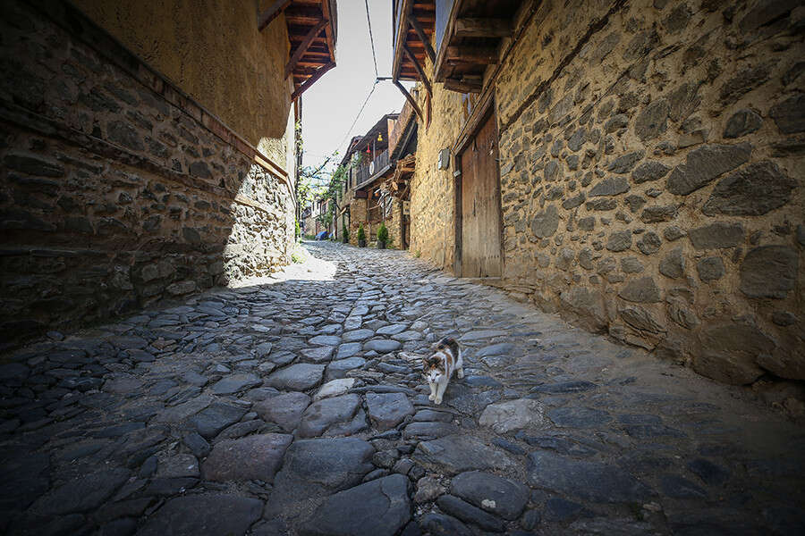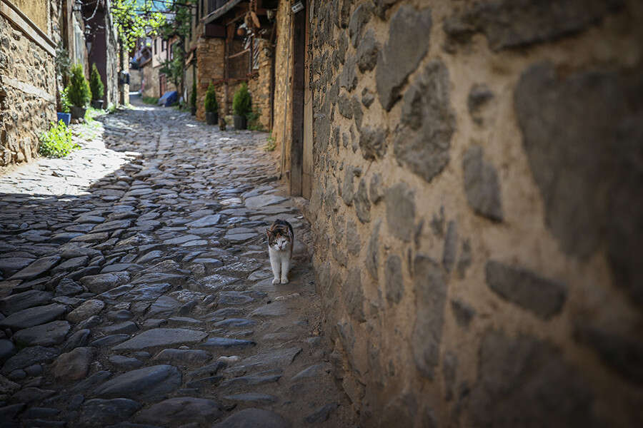 Özellikle bahar ayları ile birlikte yerli ve yabancı turistlerin akınına uğrayan 7 asırlık Osmanlı köyü Cumalıkızk, dünyayı sarsan koronavirüs salgını nedeniyle derin bir sessizliğe büründü. Hafta sonları iğne atsan yere düşmez bir yoğunluğun yaşandığı Cumalıkızık'ın tarih kokan sokaklarında şimdi adeta in cin top oynuyor. Tarihi köyde şimdilerde sokakları kediler arşınlıyor.