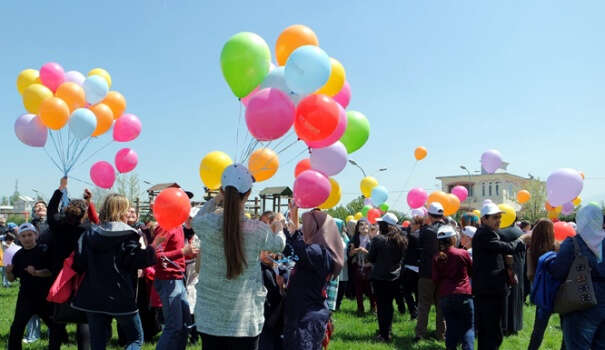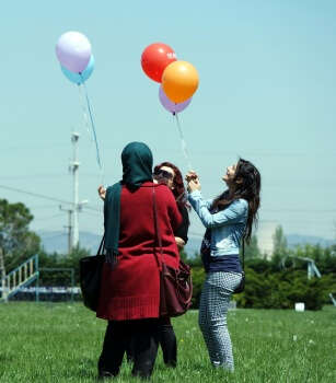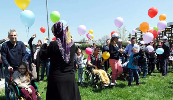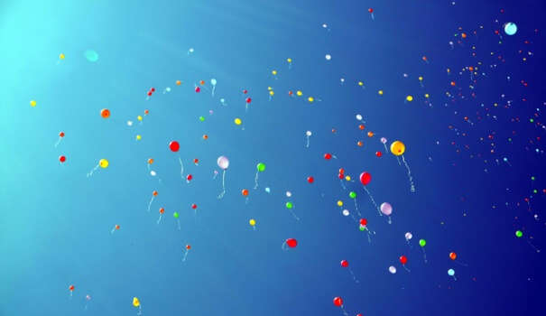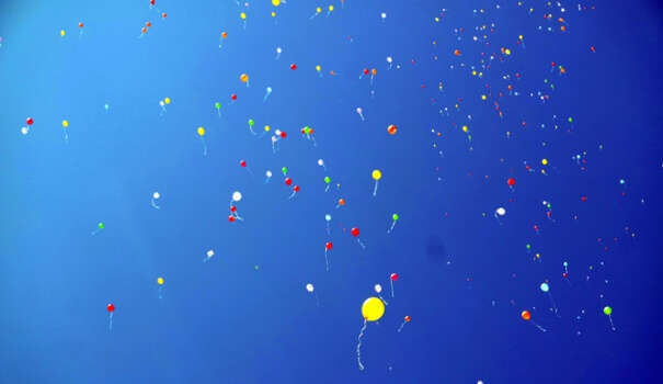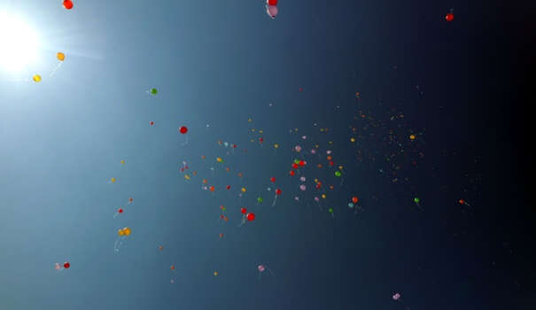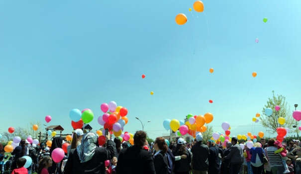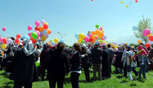 Çocuklar gökyüzüne yüzlerce balon bıraktı