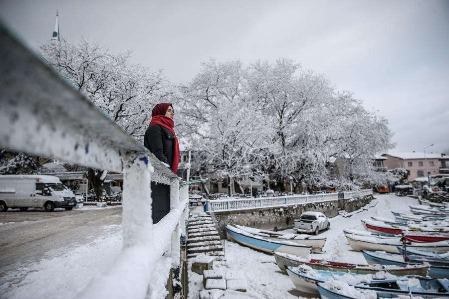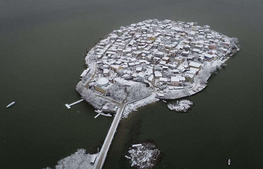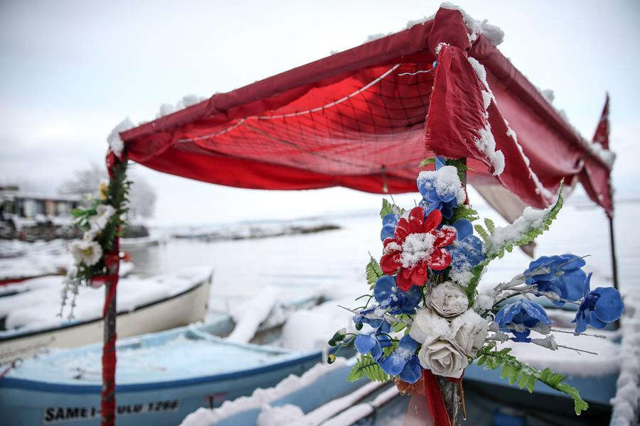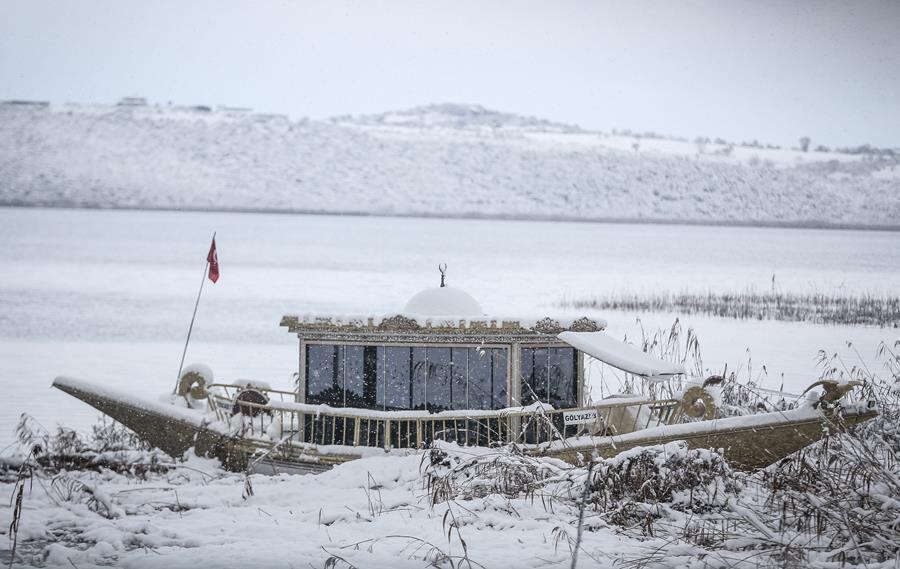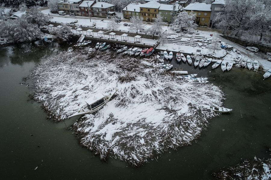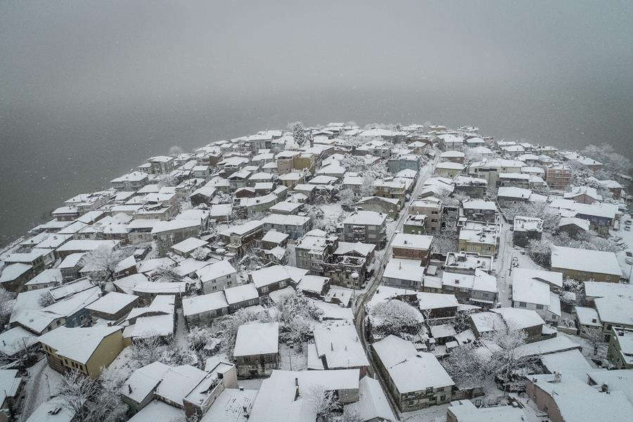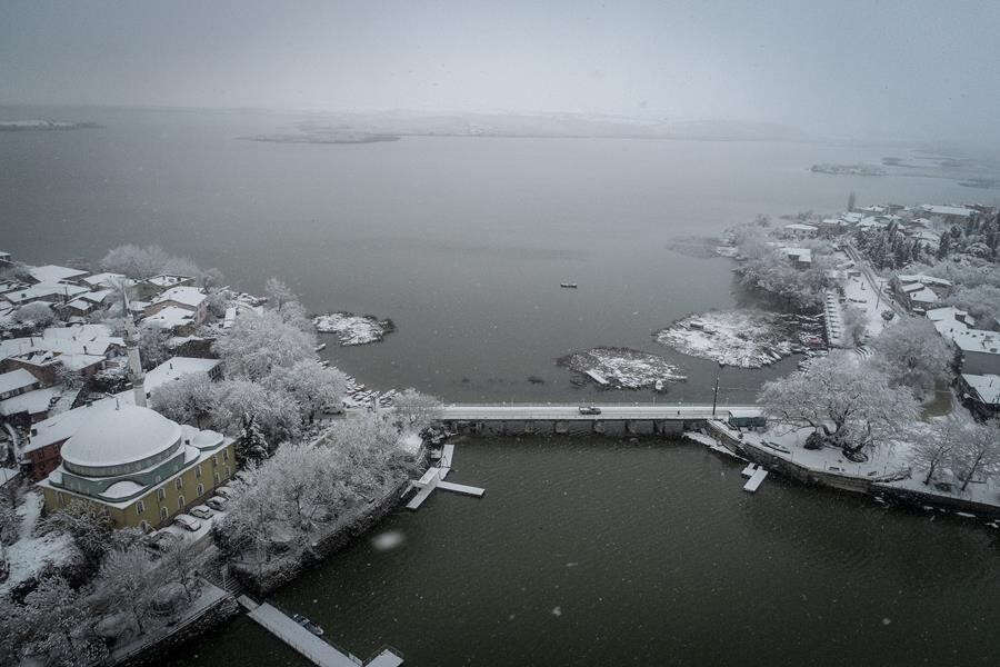 Avrupa'nın en güzel kasabaları arasında gösterilen Uluabat Gölü kıyısındaki Gölyazı kar yağışının ardından oluşan beyaz örtüsüyle farklı bir güzelliğe büründü. Her mevsim ayrı bir güzelliği olan Gölyazı'nın karla kaplı görüntüleri büyüledi. (Fotoğraflar: AA)