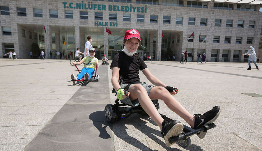 Koronavirüs salgını nedeniyle 65 yaş üstündeki vatandaşlarla birlikte uzun süredir evlerinde kapalı kalan 20 yaş altı genç ve çocuklara tanınan sokağa çıkma serbestisinde bugün sıra 0-14 yaş grubu çocuklardaydı. Uzun süredir dışarı çıkmayan çocuklar Nilüfer Belediyesi'nin kendileri için parklarda hazırladığı sürpriz eğlencelerle felekten bir gün geçirdi. Çocukların eğlencesine Nilüfer Belediye Başkanı Turgay Erdem de ortak oldu.