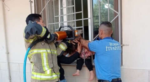 Bursa'da evde oyun oynarken başı pencere korkuluklarına sıkışan çocuğu itfaiye kurtardı