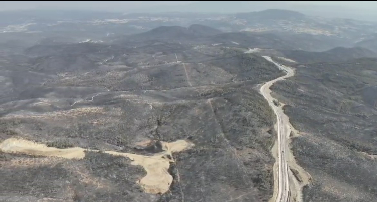 Harmancık Orhaneli ilçesi kırsalında 26 Temmuz'da başlayan yangın, rüzgarın etkisiyle hızla büyüyerek geniş bir alana yayıldı. Orman Bölge Müdürlüğü ekiplerinin yanı sıra çok sayıda itfaiye ve gönüllü, alevleri söndürmek için seferber oldu. 5 uçak, 30 helikopter ve 855 kara aracıyla günlerdir süren zorlu müdahalenin ardından yangın bugün kontrol altına alındı. Bölgede soğutma çalışmaları sürerken ormanlık alanın büyük kısmı zarar gördü. Dronla kaydedilen görüntüler, doğanın uğradığı tahribatı gözler önüne sererken, küle dönen ağaçlar ve kararmış topraklar yürek burktu.