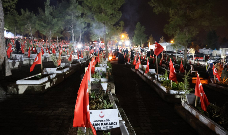 Kahramanmaraş’ta 6 Şubat 2023 günü meydana gelen depremlerde hayatlarını kaybedenlerin yakınları depremlerin 2. yıl dönümünde gece saatlerinde sabahın erken saatlerine kadar mezarlıklara akın etti. Depremin vurduğu kentte, en büyük mezarlıklardan biri olan Dulkadiroğlu ilçesindeki Kapıçam Mezarlığı, saatler 04.17’yi gösterdiğinde hüzünlü anlara sahne oldu.