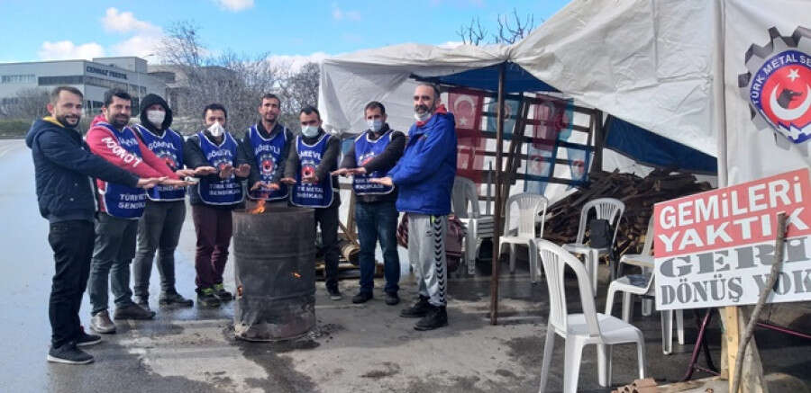 İlk gün eyleme başlayan 81 işçinin 10'u acil para ihtiyacından dolayı arkadaşlarının da yardımıyla başka yerlerde işe girerler. 71 işçi, Türk Metal Sendikası'nın verdiği çadırda nöbetleşe kalarak eylemlerini sürdürüyor. "Biz hakkımızı korumak için sendikaya başvurduk." diyen işçiler, kar, yağmur, soğuk demeden kapının önünde bekliyorlar. Aralarında 15 yıldır fabrikada çalışan da var, henüz 20 günlük işe başlayan da.