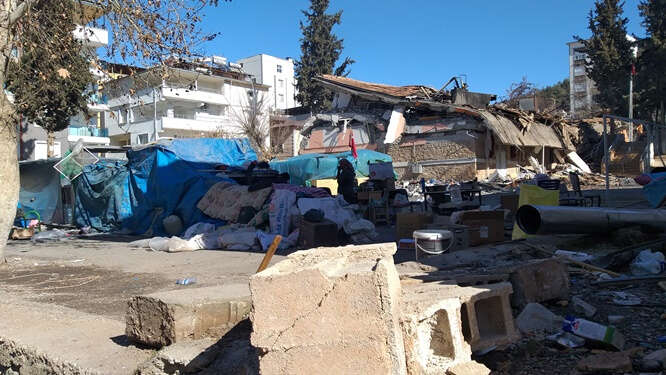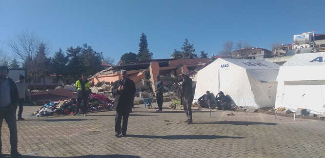 İlçe merkezinde Silopi Belediyesi, Dersim Belediyesi ve AFAD’ın kurduğu çadır kentler bulunuyor. İnsanların bir kısmı daha iyi durumdaki köylerine gitmiş, bir kısmı farklı illerdeki akrabalarının yanına gidiyor veya gitmeye çalışıyor. Kendi çabalarıyla yaptıkları mavi çadırda kardeşi ve oğluyla birlikte kalan bir kadın depremzede, tedavi olmak için Antep’e kardeşinin yanına gitmek istediğini söylüyor: “Antep’te kardeşim var, orada ev buldu bana ama nasıl giderim onu düşünüyorum. İlk günlerde yardım geldi. Sağlık taraması ve ilaç yardımı yapılmadı. O yüzden Antep’e gitmek istiyorum. Yardım getirenler de ‘tansiyon ilacı yok’ dedi.”