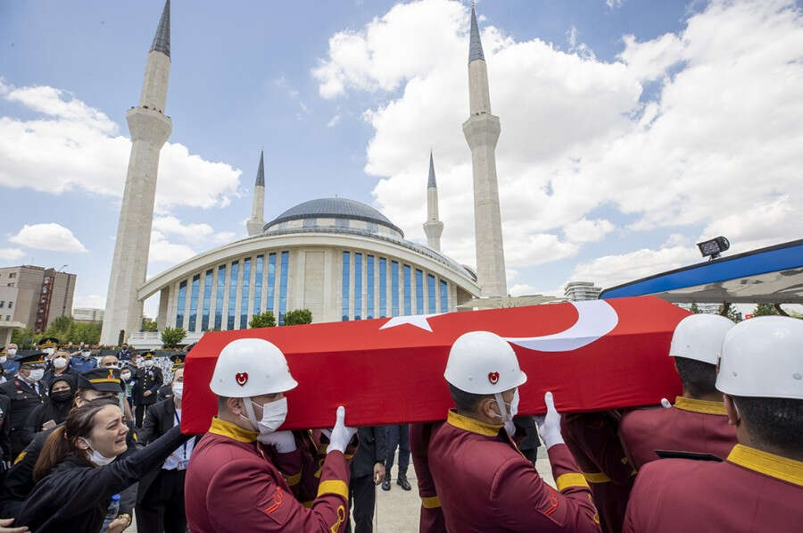 Jandarma Uzman Çavuş Hüseyin Keleş, Ankara'da Ahmet Hamdi Akseki Camisi'nde düzenlenen cenaze töreninin ardından son yolculuğuna uğurlandı.