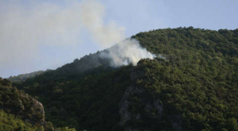 Bağ evinin yanındaki ormanlık alana sıçrayan yangın, rüzgarın da etkisiyle yayıldı. Olay yerine gelen itfaiye ekipleri, arazinin sarp olması nedeniyle yangın yerine ulaşamadı.