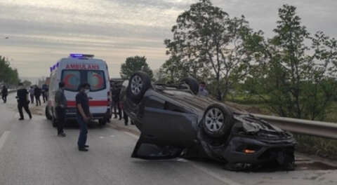 Bursa-Ankara kara yolunda Sabri A. idaresindeki 16 ALV 346 plakalı otomobil, refüjdeki aydınlatma direğine, ardından da ağaca çarpıp yola devrildi.