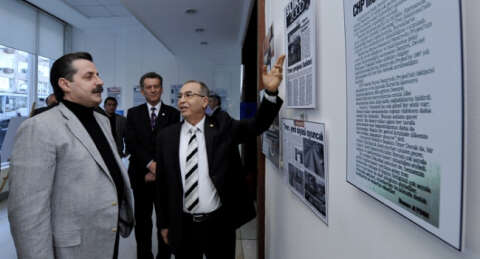 Çalışma ve Sosyal Güvenlik Bakanı Faruk Çelik, eski CHP milletvekillerinden Kemal Demirel'in Tayyare Kültür Merkezi'nde açtığı ve Bursa'ya demiryolu getirmek için yürüttüğü kampanyalarla ilgili haber ve fotoğraflardan oluşan resim sergisini gezdi.