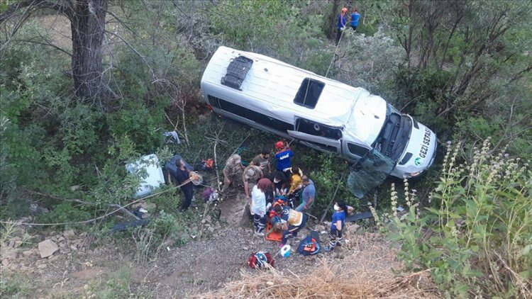 Ekiplerin yoğun çalışması sonucu yaralılar, halat yardımıyla bulundukları yerden çıkarılarak ambulanslara taşındı.
