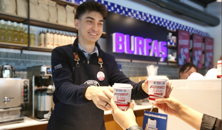 Eşi Seden Bozbey ile birlikte barista önlüklerini giyen Başkan Bozbey, Cumhuriyetin 102. yılına özel olarak hazırlanan ‘Cumhuriyet Demek’ temalı bardaklarda içecek ikramında bulundu. Vatandaşların isimlerini ‘Cumhuriyet demek' temalı bardaklara yazan Başkan Mustafa Bozbey ve eşi Seden Bozbey, Atatürk’ün emanet ettiği Cumhuriyet’in sıcaklığını Bursalılarla birlikte paylaştı. Bu sene kutlamaların teması olan ‘Cumhuriyet demek, hepimiz demek’ sloganını da yazarak ikramda bulunan Başkan Bozbey ve eşi Seden Bozbey, kahve keyfini vatandaşlarla birlikte yaşadı.