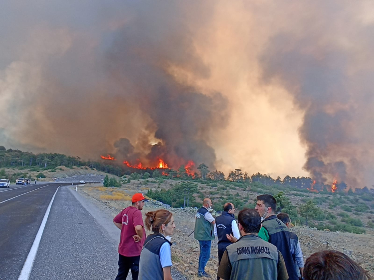 Bursa Büyükşehir Belediyesi Başkanı Mustafa Bozbey, Orhaneli-Harmancık ilçeleri arasında devam eden yangının söndürülmesi için sürdürülen çalışmaları yerinde inceledi. Harmancık’taki yangının 6 farklı bölgede bir anda başlamış olmasının düşündürücü olduğunu açıklayan Başkan Bozbey, yangın tehlikesine karşı 5-6 mahallenin tamamen boşaltıldığını ifade etti.