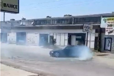 Olay, Bursa'nın merkez Nilüfer ilçesi Küçük Sanayi Sitesi 63. Blok'ta meydana geldi. Plakası belirsiz bir otomobil sokak üzerinde dakikalarca drift attı. Çevrede bulunan vatandaşların ve iş yeri sahiplerinin uyarısına da aldırış etmeyen sürücü, drift atmaya devam etti. Bir süre bu şekilde drift atan sürücü daha sonra bölgeden uzaklaşarak izini kaybettirdi.