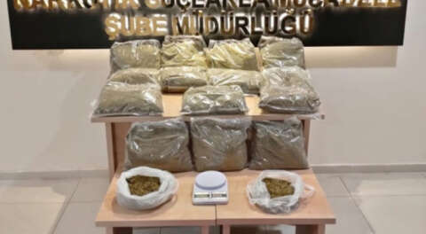 Şüphelilerin ev ve iş yerlerinde yapılan aramalarda 20 kilogram sentetik kannabinoid ile hassas terazi ele geçirildi.