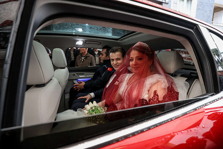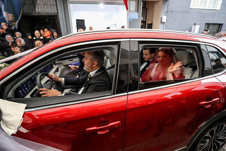 Gelin Habibe Özdemir ise Togg'da güvenlik görevlisi olarak çalıştığını dile getirerek, "Çok heyecanlıyım. Hem üzüntülüyüm hem de çok mutluyum. Aslında Hüseyin ben ilk Togg'a girdiğimde, 'Kırmızı rengini bize versinler de gelin arabası yapalım.' demişti. Bunun üzerine kırmızı Togg gelin arabası oldu. Rabbim nasip etti." dedi.
