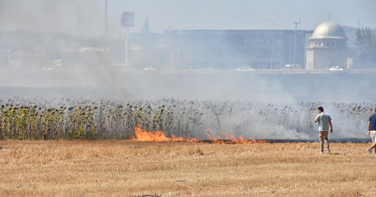 Ekipler, evlerin yakınındaki sebze ve meyve bahçesindeki kulübelerin, ayçiçeği ekili yaklaşık 10 dekar tarlanın zarar gördüğü yangını 1 saatte kontrol altına alarak söndürdü.