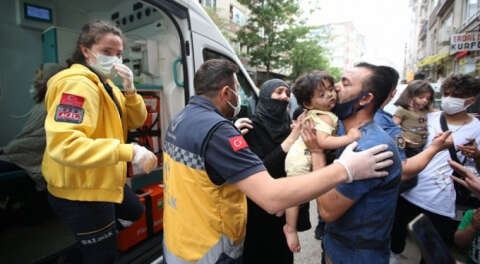 Dumandan etkilenen 2'si çocuk 4 Suriye uyrukluya 112 Acil Servis ekiplerince ambulansta müdahale edildi.