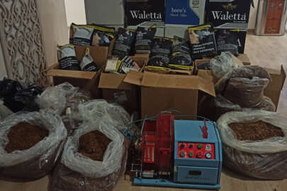 Depoda yapılan aramalarda sigara dolum makinesi, 6 bin adet dolu makaron, 98 kilogram paketli tütün, 229 bin 600 adet boş makaron, 56 kilo 700 gram kıyılmış tütün ve bir terazi ele geçirildi.