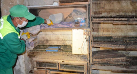 Evin ilk iki katında çöp biriktirildiğini tespit eden ekipler, son katta ise tamamı kafeslerle dolu odalarda, civciv üretimi yapıldığını belirledi.