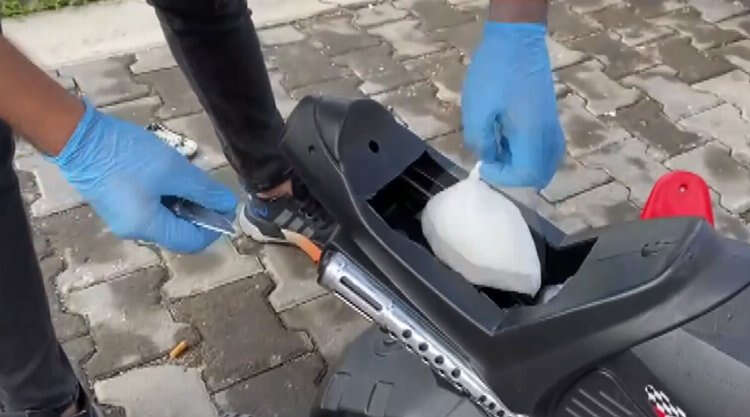 Narkotik köpeği "Fırtına"nın yardımıyla yapılan aramalarda çocuk bisikletine zulalanmış 5 kilogram sentetik uyuşturucu bulundu.