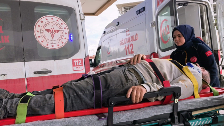 Çatı katında mahsur kalan yaralı usta için 112 ve itfaiye arama kurtarma ekiplerine haber verildi.
