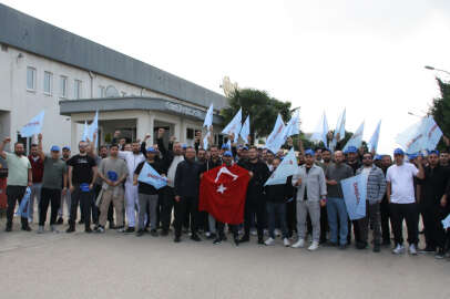 Çalışanlar iş bırakarak fabrikadaki üretimi durdururken işten çıkarılan arkadaşlarına destek vermek amacıyla sendika öncülüğünde protesto eylemlerine katılıyor.