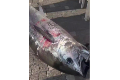 Bursa’da Gemlik Körfezi’nde avlanan balıkçılar 68 kilo ağırlığında orkinos balığı yakaladı. Balıkçılara direnen dev balık kaçmaya çalışırken tekneyi salladı. Balıkçıların tekneyle yaptığı takip sonrası orkinos balığı yaralı olarak tekneye alındı. O anlar kameralara saniye saniye yansıdı.