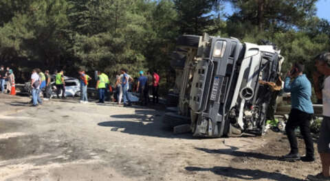 Bursa'da sürücüsünün kimliği henüz belirlenemeyen 06 DV 0312 plakalı beton mikseri Bursa-Orhaneli kara yolu Doğancı Barajı mevkisindeki virajda devrilerek önce 35 HAC 95 plakalı otomobile ardından 16 NYY 69 plakalı otomobile çarptı.