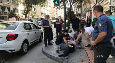 Çarpmanın etkisiyle savrularak başını kaldırıma çarpan yaya yaralandı.