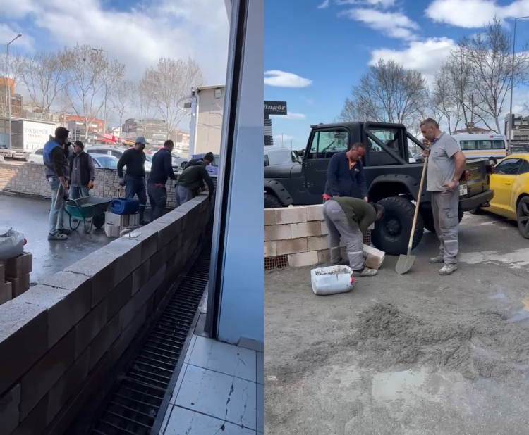 Bursa'da iddiaya göre diğer 2 ortak ile anlaşmazlık yaşayan yer sahibi, mevcut kiracıyı çıkarmak ve alanı plazaya dönüştürmek için oto lastikçi dükkanının önüne duvar ördürdü. Duvar nedeniyle araçlar içeride mahsur kalırken, işletmenin faaliyetleri durma noktasına geldi.