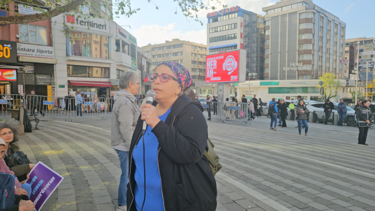 İstanbul'da eylemler nedeniyle üniversite öğrenicisi oğlu tutuklu bulunan Gülay Alkan ise, açıklamanın ardından konuşma yaparak, oğlunun Vatan Emniyet'te 3 gün aç, susuz bırakıldığını söyledi. Sınavlara hazırlandığı için oğlunu 3 aydır görmediğini, 3 ay sonunda Silivri Cezaevi'nde gördüğünü belirten Alkan, "Gururlu ama gözlerindeki o burukluğu gördüğümde hem güçlü durmaya çalıştım hem de ona ne anlatacağını bilemedim. Evine gittiğimizde gördük ki tüm öğrencilerin evlerinde eşyalarını parçalamışlar. Dolap paramparçaydı, eşyaları yerdeydi, en değer verdiği kitapları yerdeydi, elbiseleri yerdeydi. Bu, çocuklardan ne kadar korktuklarının göstergesi. Çünkü gençler artık AKP iktidarının ellerinden aldığı hayatları tekrar geri almak istiyorlar. Gerçekten umutlular. Direniyorlar. Çok güçlüler. Bu güçten korkuyor zaten iktidar" diye konuştu.