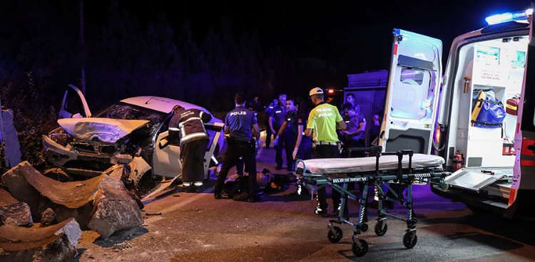 Bursa'da feci kaza; Refüje çarpan otomobilde 1 ölü, 2 ağır yaralı